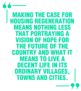 These are not abstract challenges but they are complex. Making the case for housing regeneration means nothing less that portraying a vision of hope for the future of the country and what it means to live a decent life in its ordinary villages, towns and cities.