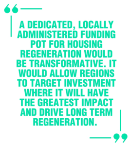 Crucially, it would allow regions to bring housing, health, decarbonisation, economic development, infrastructure and transport together into one coherent programme, instead of navigating separate schemes with separate rules. This long term, locally accountable investment could unlock the kind of regeneration that lasts; improving homes, health, local economies and giving people new opportunities to thrive.