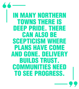 In many Northern towns there is deep pride. There can also be scepticism where plans have come and gone. Delivery builds trust. Communities need to see progress.